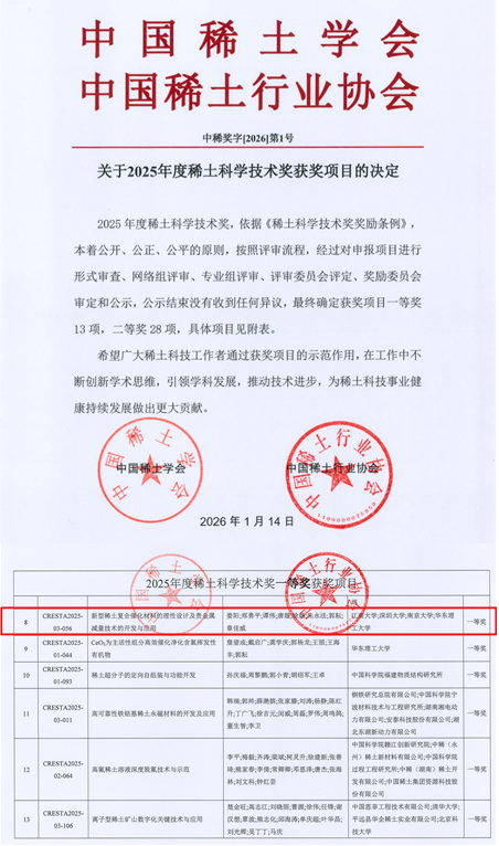 娄阳教授牵头获得2025年度稀土科学技术奖一等...