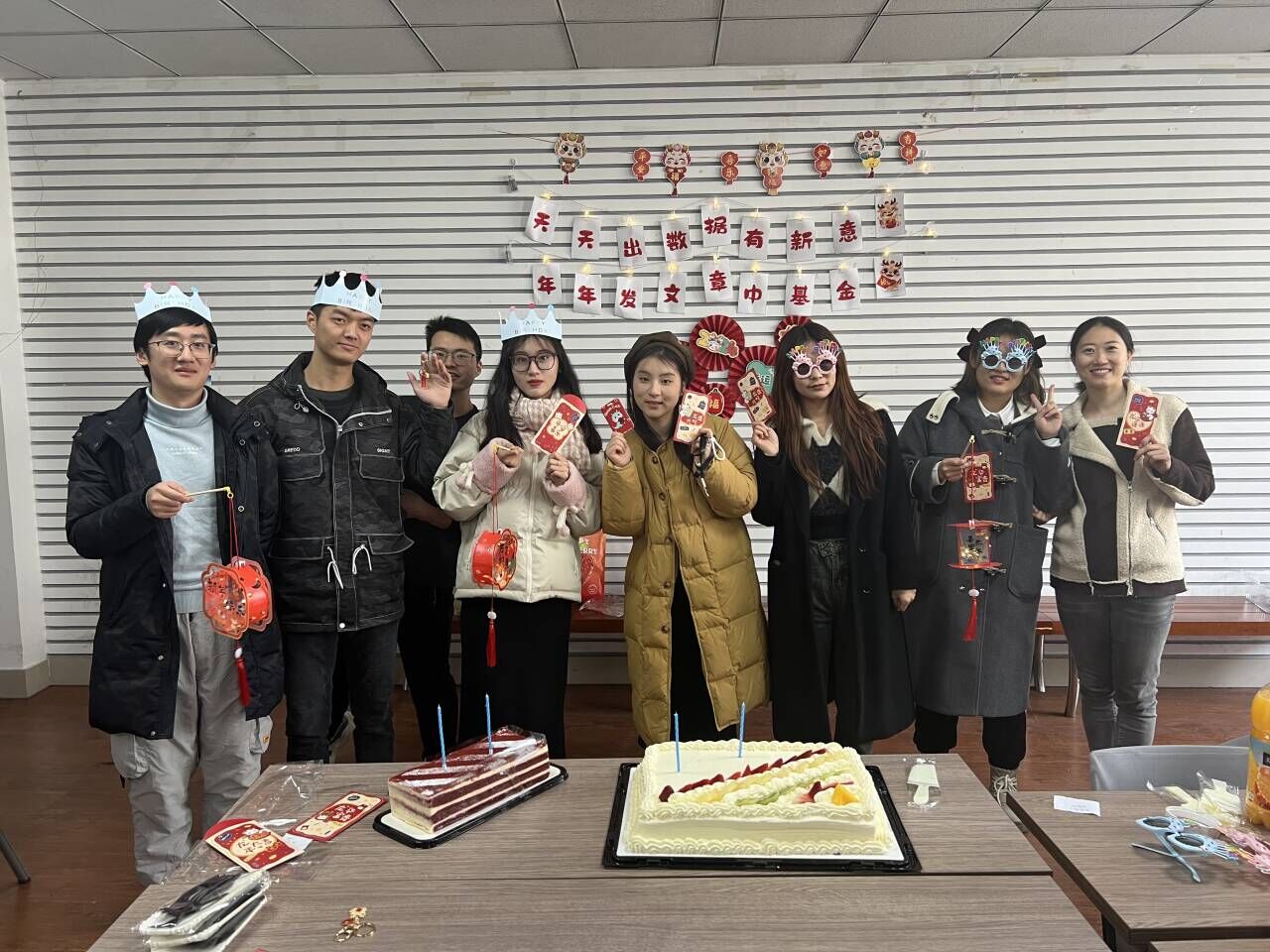 本期生日会寿星(从左至右):李静怡(后排)刘杰(后排),项清(前排)陈林洋(前排)刘鹏程(前排)