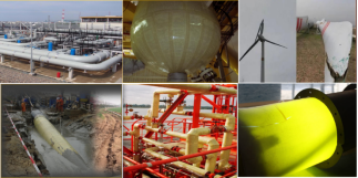 光固化复合材料具有固化速度快、成型周期短、固化温度低、环境污染小等优点,广泛应用于隔热层外保护、管道穿越与补口、污水池腐蚀、渗漏防护、海洋环境金属防腐保护、市政排水管道非开挖修复、风机叶片光固化快速修复等领域。课题组基于光聚合收缩应力、固化机制、构效关系等理论研究基础,发展了高性能复合材料、大厚度复合材料的光固化制备,发展了复合材料的原位高效制备技术。