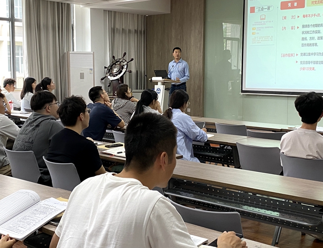 林增结合工作实例,围绕基层党组织规范化建设、《党支部工作手册》填写规范和发展党员工作流程等主题,进一步明确了基层党建工作的方向和要求,指出了当前党建工作中存在的问题与不足,并给出了针对性的工作建议。他对如何规范使用《党支部工作手册》记录“三会一课”等内容做了详细讲解,并就一些注意事项进行了解读。针对党员发展工作,他强调了党支部书记的工作要求,即控制总量、优化结构、提高质量、发挥作用,督促各支部书记与支委在抓好党建党务工作的同时,应多花心思,多下力气,促进基层党建工作规范化、制度化、标准化。交流环节,林增针对于大家提出的问题,进行了答疑。