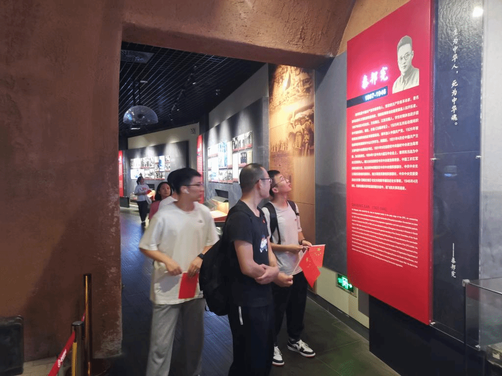 为庆祝中华人民共和国74周年华诞,进一步深化学习习近平新时代中国特色社会主义思想,增强党员政治意识,坚定党员理想信念,9月26日下午,2007so太阳集团博士生第四党支部全体党员赴无锡市博物院革命陈列馆开展“追寻历史印记,共庆祖国华诞”主题党日活动。