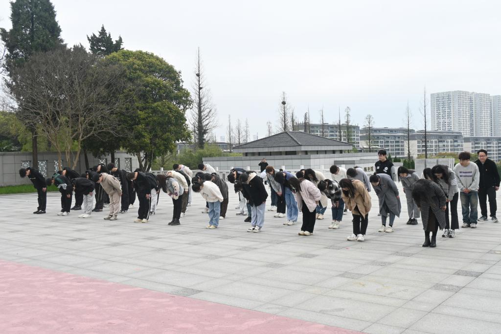 活动伊始,党员代表将花圈郑重地摆放在烈士纪念碑前以表达无尽的敬仰和哀思。随后,全体同志肃立默哀三分钟,向革命烈士致以崇高的敬意。默哀结束,大家面向烈士纪念碑,齐声背诵人民英雄纪念碑碑文。随即,董霞讲话,她号召同学们以实际行动践行革命烈士的精神,肩负起时代重任,发挥专业特长,投身国家建设。接下来,全体师生向革命烈士们三鞠躬,缅怀烈士们的英勇事迹和崇高精神,表达对烈士们的深切怀念和崇高敬意,并向烈士们许下庄严的承诺,为祖国的繁荣富强奉献青春力量。接着,全体同志依次上前瞻仰革命烈士墓与先烈事迹,目光坚定,神情肃穆。在祭奠仪式结束后,全体同学前往烈士纪念馆参观。通过观看图片、文物和史料回顾了党的历史和先烈的英勇事迹,深入了解了那段波澜壮阔的革命岁月,深刻领会了革命先烈坚定的理想信念。参观结束后,党员同志们在馆内重温了入党誓词。