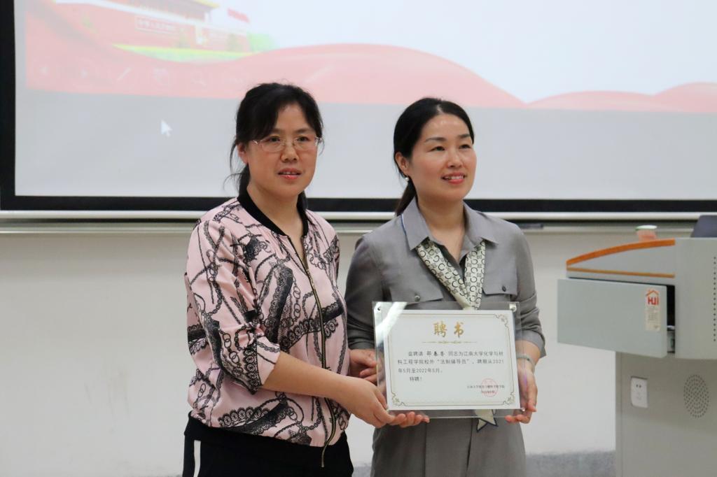 学院特别聘请邵春香律师为我院校外“法制辅导员”,为学生开展专业法律咨询和法律知识普及讲座。活动首先进行校外“法制辅导员”聘任仪式,田卫平代表学院为邵春香律师颁发聘书。