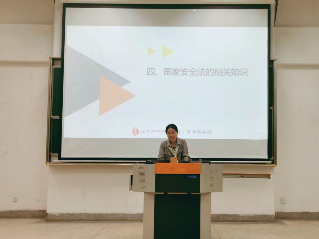 随后,邵春香律师带来题为《知法守法远离犯罪》的法治讲座。邵律师从大学生违法犯罪概况入手,介绍了六种常见大学生犯罪类型,通过介绍犯罪构成条件、解读法条与案例展示,深入浅出地阐明了大学生犯罪的基本情况及危害性。随后,邵律师从被犯罪行为伤害的角度出发,指出大学生作为学生群体,涉世不深,安全意识较为薄弱,因此也是诈骗案件的主要受害群体,她提醒同学们要警惕抢劫、网络电信诈骗以及校园贷等犯罪行为,同时树立正确的价值观。最后,邵律师还介绍了国家安全法的相关知识,并结合案例解读国家安全法的相关法条,引导同学们强化爱国情怀,建立国家安全意识,以实际行动捍卫国家安全。