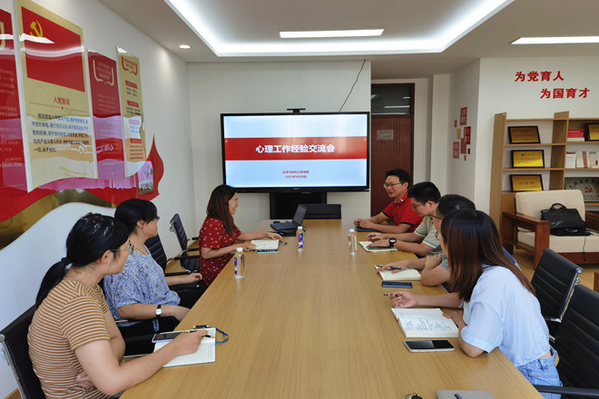 为进一步落实“全省高校学生心理健康教育工作推进视频会议”精神,落实学校新学期心理工作专题会议精神,提升学工队伍心理育人与危机预防干预能力,9月30日下午,化工学院学生心理工作经验交流会在化工楼A314会议室举行。本次会议邀请到了人文学院心理辅导员张慧分享交流心理工作经验,化工学院副书记、副院长田卫平主持本次会议,学院研本各年级辅导员参加本次会议。