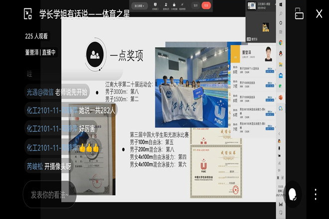 学涯职涯教育,把稳大学之舵。学院充分利用朋辈辅导接受快、效率高、传播广等优势,选拔学院“朋辈讲师团”,组织策划“学长学姐有话说”系列朋辈引领活动,邀请到老生中的“文艺之星”“竞赛之星”“体育之星”“至善学子”等优秀学生,对新生展开《大学生的文体“两开花”》《把握机会很重要》《至善到底是什么》等不同主题的线上讲座。讲座围绕新生感兴趣的话题开展,充分发挥了学院优秀学生的榜样引领作用。