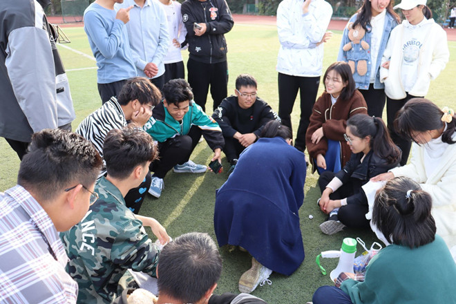 各班利用课余时间在体育中心、操场等地组织各式各样的游戏。各班心理委员在学院心理中心的指导下集思广益开动脑筋,在破冰活动中开展了“数字炸弹”“你画我猜”等游戏,这些游戏深受大家的喜欢,同学们在游戏开展过程中参与度高、完成度好,同时游戏也提高了大家的团队协作能力。在欢乐的游戏氛围中,大家增进了了解、促进了友谊、铸就了默契团结的集体凝聚力。两个小时紧张又刺激的互动,同学们欢声笑语,现场气氛融洽、热闹非凡。