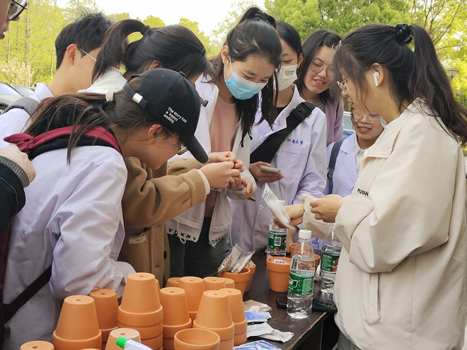 是春风吹得远,人间无处不生暖。在这美好的四月江南,为丰富同学们的生活体验,引导同学们在劳动种植中认识自然、亲近自然,化学材料与工程学院心理协会于4月12日在化工学院门口开展了"春日播种"活动。本次活动采取线上报名,线下开展的形式进行,参与人员面向全体师生。同学们学习春播的相关知识,创意性地DIY花盆彩绘,并亲手种下心仪的花草,感悟对自然的热爱,展现出青春的风采。