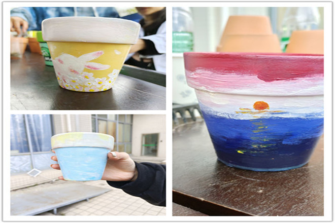 忙碌的学习工作并没有削弱同学们和活动负责人们的热情,负责前期准备的工作人员们积极筹办,大力宣传,成效显著,同学们广泛参与,展现出属于春天这个季节的活力。有栽种就有花盆,有花盆就有花盆的彩绘,在这里,同学们飞扬手中的画笔,用自己对彩绘的独特理解,加之丰富的想象力,DIY了一个又一个独具特色的花盆,丰富的颜色、精美的图案、奇奇怪怪的形状,无不体现着化工学子非凡的脑洞和创意。