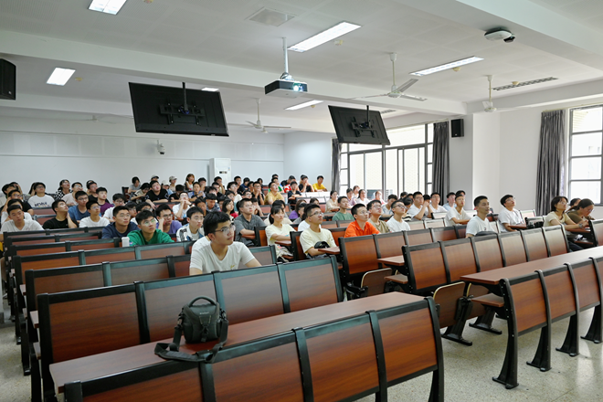 化学工程与工艺专业见面会由化工系主任蒋建中主持。他首先表达了对化工专业新面孔的欢迎。接着,他以化工专业在各个领域发展状况为切入点,讲述了其在化妆品,环保,化工等领域的作用及意义,激发同学们学习化工的兴趣,并着重介绍了先进催化等技术,表达了对新生投入化工领域的期待。