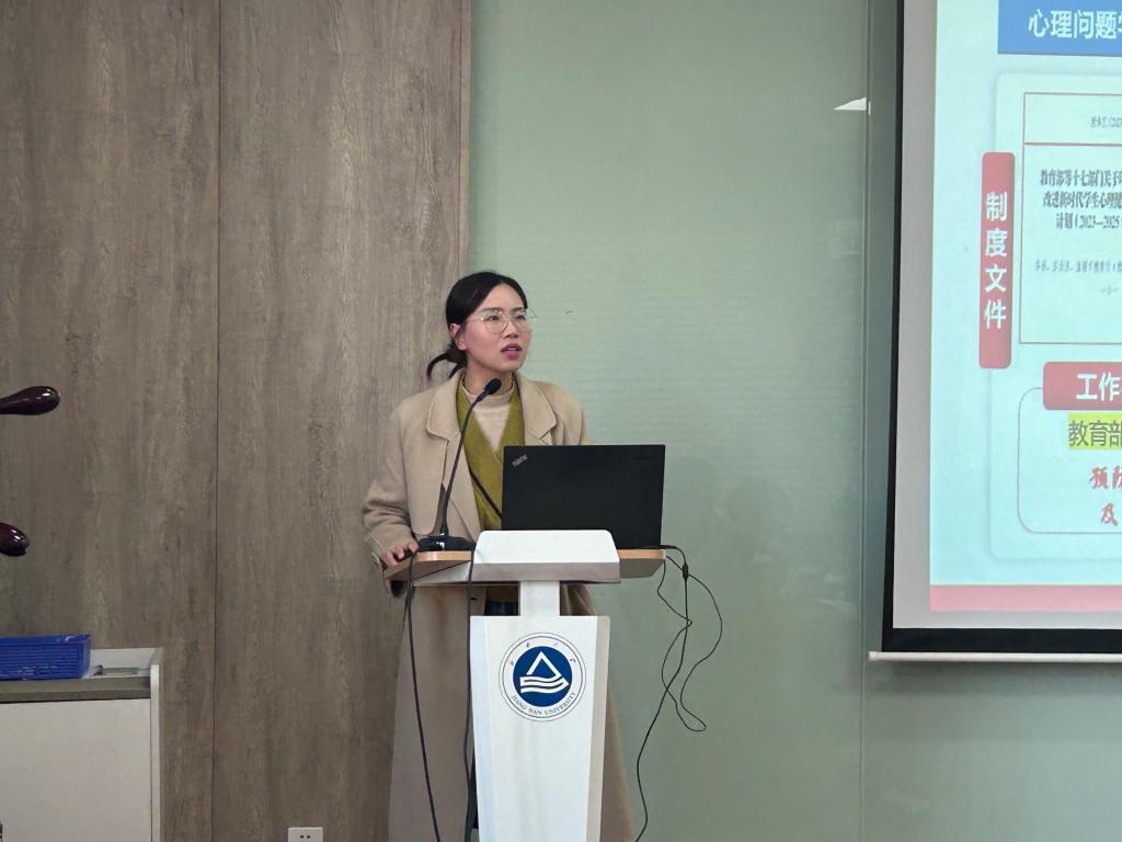 潘焱毓首先介绍了当前心理问题的发展新趋势。她指出,目前需要关爱学生人数增多、心理危机事件增多、极端事件增多,教育部已将加强心理健康教育上升为国家战略。据此,潘焱毓从观察“细心”、倾听“暖心”、树立“信心”三个方面重点讲解了科学化识别问题、深入化谈心谈话、网格化队伍支持等心理育人工作要点和方法。她强调:“每个人是自己心理健康的第一责任人,同时也是守护他人心理健康的‘吹哨人’”,全体班主任和辅导员老师要努力成为学生成长成才的人生导师和健康生活的知心朋友。