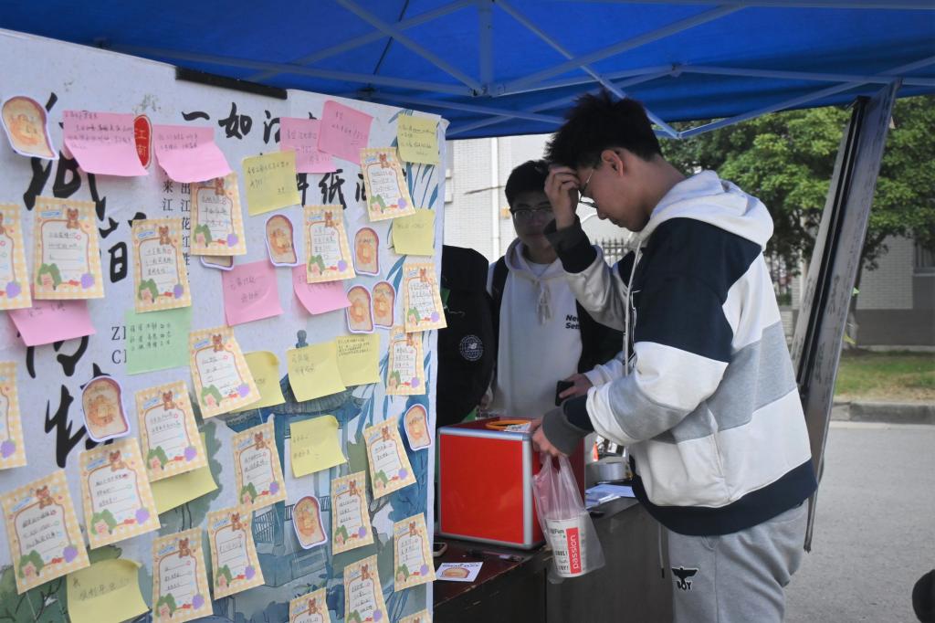 活动伊始,园区同学被志愿者们的宣传和丰富的奖品所吸引,在志愿者们耐心的讲解下,不少同学在便签上写下自己的心愿与祝福,还有同学参与了“漂流瓶活动”,将来自陌生人的祝福传递下去,此外青协特色的“e笺”活动也引起了同学们兴趣,将内心难以言表的话语委托志愿者们代发传达,让心与心之间建立了一座无形的桥梁。活动尾声,展板逐渐被写满祝福的便利贴所充实,小箱子里的“漂流瓶”也越来越多,同学借此机会来相互倾诉、互相温暖。