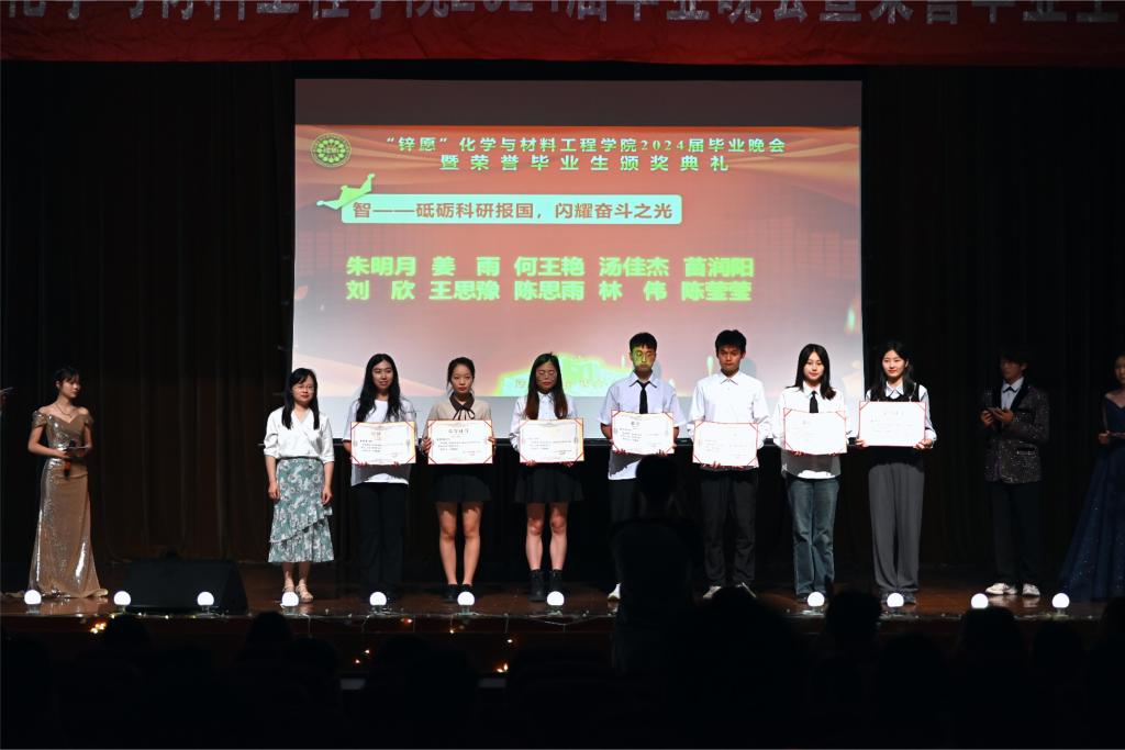 6月15日晚,2007so太阳集团2024届毕业晚会暨荣誉毕业生颁奖典礼在南区活动中心举办。化工学院党委书记潘庆伟,党委副书记、副院长董霞,毕业班级班主任代表,分团委、学工办老师及毕业班同学出席晚会。