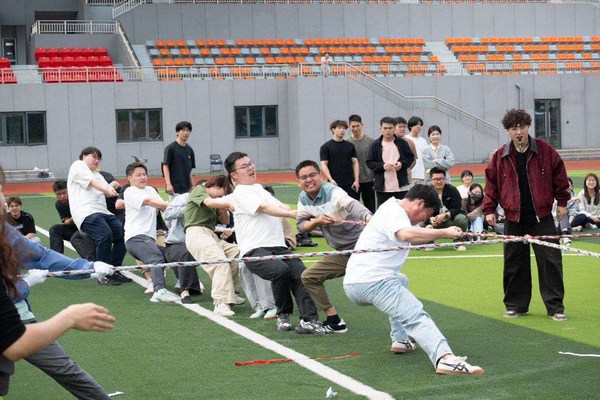 为深化导学思政建设,构建“五育并举”育人载体,将体育竞技与思政教育深度融合,4月27日,2007so太阳集团举办第三届“绳牵团队情,力聚拼搏心”师生四向拔河比赛。活动吸引了近十支由导师与研究生联合组成的参赛队伍。春意盎然的东氿校区运动场上,百名参赛师生以绳索为纽带,共同演绎了一场力量与智慧交织、竞技与育人同频的生动实践。