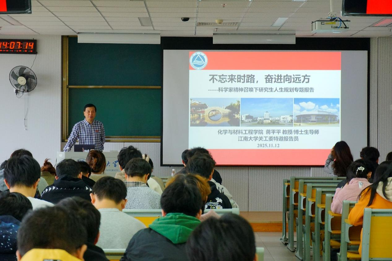 报告中,蒋平平教授结合自身科研与育人经历,围绕科学家精神的内涵与时代意义、研究生阶段目标设定与路径规划、学术素养与社会责任协同发展等主题展开深入讲解。他通过生动的案例,分享了其指导的研究生在学术探索、科技竞赛及行业实践中的成长故事,展现了坚定信念、严谨求实、勇于创新的科学精神对个人发展的重要引领作用。蒋教授强调,研究生阶段不仅要夯实专业基础、提升科研能力,更应树立服务国家战略与行业需求的远大志向,在实践中锤炼品格、追求卓越。