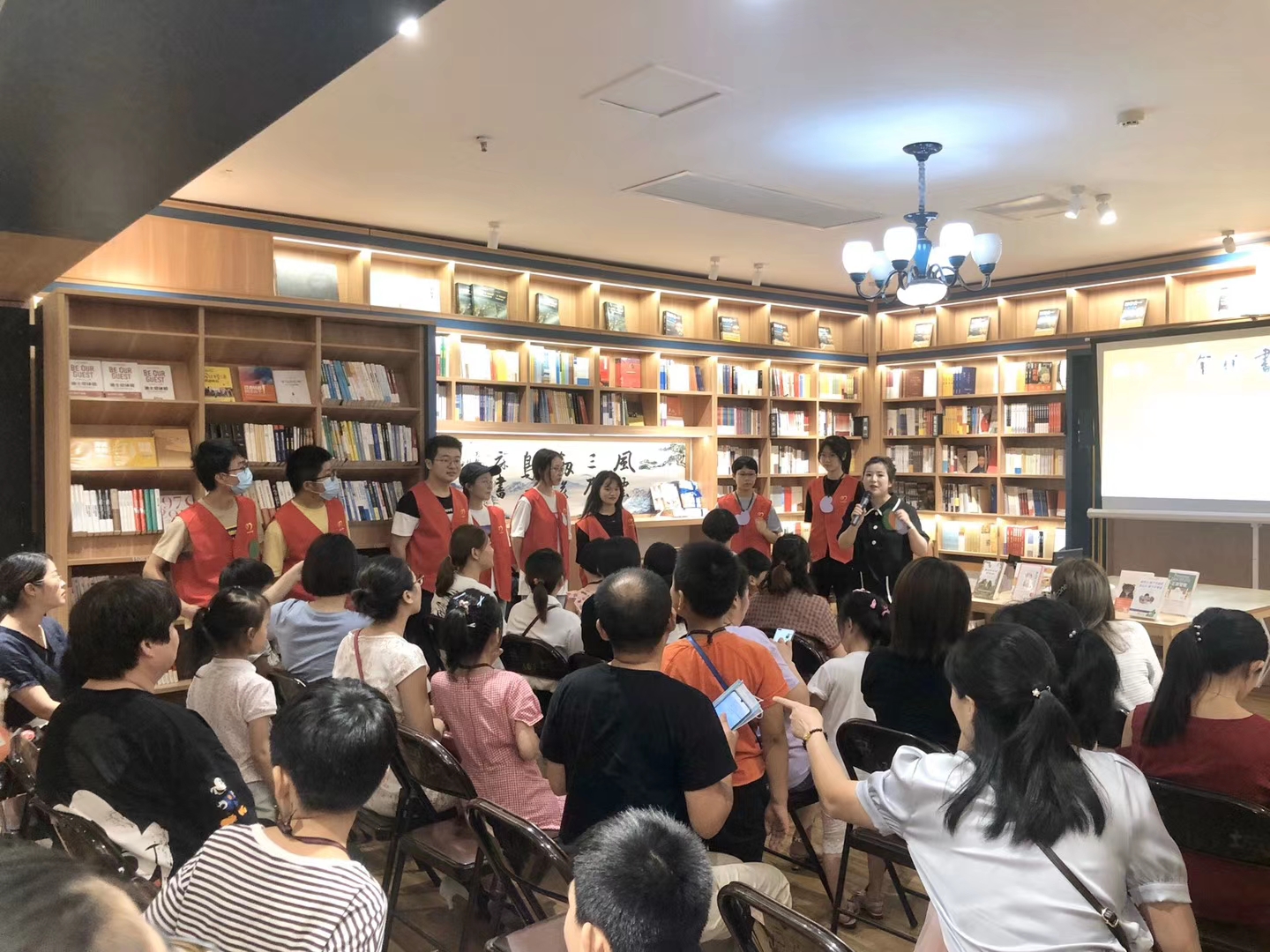 在第一次志愿者服务中,姚桢和童创益以及其他志愿者作为新华书店的引导和伴读工作人员,主要帮助和引导读者找到所需要的书籍,整理书籍,维持书城内部的秩序,这要求志愿者要非常熟悉书城内部书籍的分布,同时也要有足够的耐心和良好的沟通表达能力。而志愿者的另一项重要工作就是帮助一些阅读障碍者完成书籍的阅读,在服务期间,志愿者团队帮助了许多来寻求知识的陌生人,他们对知识的渴求,对书籍的向往也对两位同学产生了潜移默化的影响,主动接受书香氛围的熏陶。