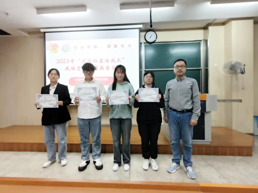 活动面向化工学院2023级全体新生,邀请了4支社会实践优秀团队,由高年级的学长学姐分享他们的社会实践经历与经验。“望来路,踏新程”实践团队进行了实地走访,通过查阅改革开放的旧资料,体会改革开放给人们生活带来的巨变,与此同时,他们去到五个地区进行戏曲宣传,让戏曲走进人们的心中;万方芳华实践团重行发展之路,汲取强国力量,在万华烟台工业园观看习近平总书记参观万华时做出的讲话视频,追寻红色足迹,继承革命精神,在胶东革命纪念馆感悟红色文化,缅怀先辈伟绩,在烟台山公园进行红色研学,重温信仰力量;澧蠡之缘实践团,面对前路的迷雾与荆棘,永不退缩,通过线上与线下相结合的方式,对接张家界的多所高中,运用互联网为学弟学妹们答疑解惑,在指导高考志愿填报中贡献自己的一份力量;鼋访芳华团队深入基层、走进社区、扎根乡村,通过整理访谈资料,深入老兵群体,聆听他们的英雄故事,主持开展“礼赞二十大,红心永向党”老兵故事征集活动和评优评选答辩活动。汇报结束后,鞠峰为4支优秀实践团队颁奖并合影留念。