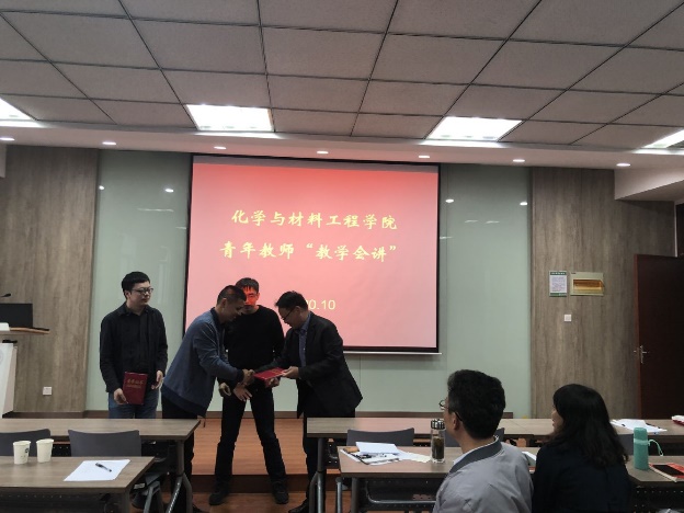 经过激烈角逐,最终陆双龙老师获得“教学会讲”比赛的一等奖,王靖、 孙冠卿和晏晓东三位老师获得“教学会讲”比赛的二等奖。最后,由院党委书记潘庆伟老师为四位获奖老师颁奖。