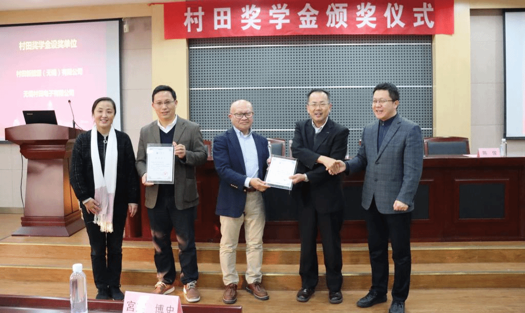 12月24日下午, “村田奖学金”颁奖典礼在化工楼B329举行。出席本次活动的嘉宾有:村田新能源(无锡)有限公司和无锡村田电子有限公司董事长野田慎治,村田新能源(无锡)有限公司副总经理辻篤,无锡村田电子有限公司管理统括部统括部长陈俊等无锡村田公司12位企业代表;机械工程学院党委书记高雪梅,院党委副书记方俊;2007so太阳集团院长东为富,院党委副书记田卫平。