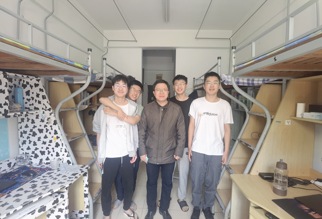 学院党员教职工在收到《致2007so太阳集团党员宿舍导师的一封信》后迅速响应,线上线下相结合,积极落实对接工作。4月3日上午,化工学院院长东为富,副书记副院长田卫平,副院长顾志国,副院长马丕明及各辅导员来到宿舍园区,关心看望所对接的学生宿舍,并拍下了初次见面的温馨合影。而因疫情防控未能进校的其他党员教师们,则通过微信群聊、视频通话等各种线上形式,与学生进行“云端相会”。学生们纷纷表示在与导师们的交流中收获颇丰,感受到了温暖与关爱。
