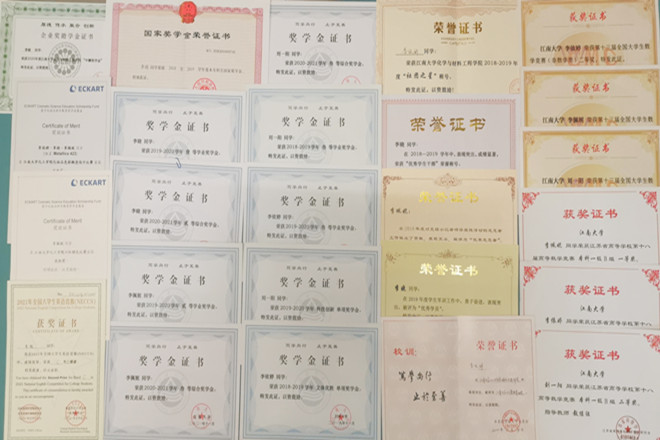 部分学生获奖证书