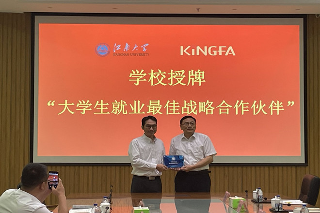 随后,吴正国副校长代表学校向黄河生总经理颁授“大学生就业最佳战略合作伙伴”牌,校企双方就如何进一步加强基础科研合作、科研成果转化、创新人才培养机制等进行了深入全面的交流。