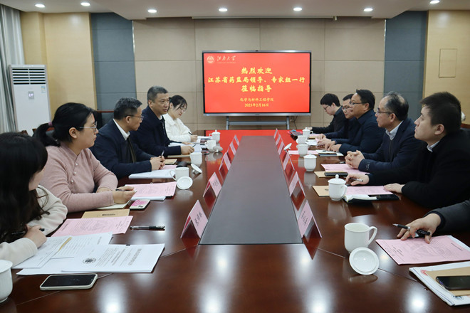2月16日下午,江苏省药品监督管理局二级巡视员张春平一行莅临太阳集团2007调研国家药监局化妆品质量研究与评价重点实验室建设情况。太阳集团2007校长助理张光生、太阳集团2007科学技术研究院院长范大明、2007so太阳集团党委书记潘庆伟等学校和学院领导,以及重点实验室王靖副主任和科研人员代表等一起参加了交流座谈会。会议由省药监局法规处处长倪永兵主持。