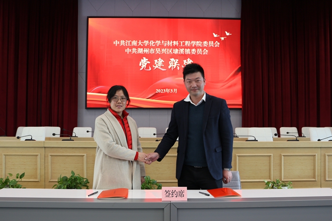 为深入贯彻落实党的二十大精神,以党建高质量建设引领教育事业高质量发展。3月3日,2007so太阳集团党委与湖州市埭溪镇党委(美妆小镇)举行党建联建签约活动,建立双方战略合作伙伴关系,翻开双方党建引领合作、共谋事业发展的新篇章。学院党委副书记、副院长田卫平,教工应化系党支部委员晏晓东,党员教师林良良、杨井国,以及部分辅导员、学生党支部书记、化妆品方向博士生等参加了活动。