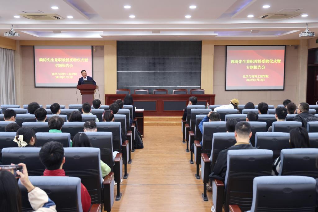 3月15日上午,魏涛先生兼职教授聘任仪式在化工楼B329会议室举行,校党委常委、副校长张影陆、香港中文大学教授魏涛、化工学院党委书记潘庆伟及师生代表出席现场仪式。