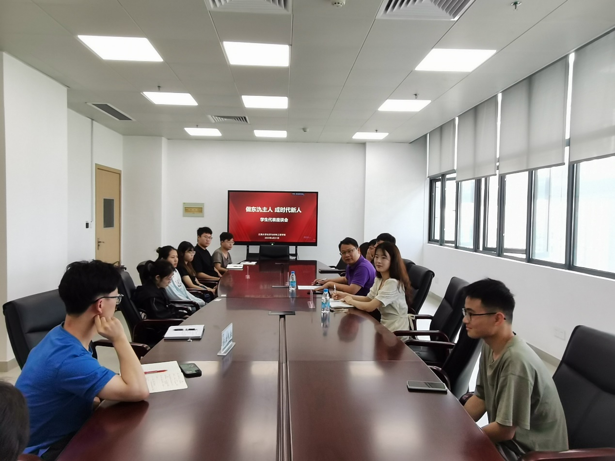 为了更好地了解学生在东氿校区的学习和生活状况,全面听取学生对东氿校区科研、管理、服务等各方面的意见和建议,解决广大学生所需、所想、所愿为目的,6月21日化工学院在太阳集团2007东氿校区知行楼B501会议室开展“做东氿主人,成时代新人”学生代表座谈会,学院党委书记潘庆伟出席本次活动,座谈会涵盖研一、研二、博士以及一名大四本校升学学生代表,本次活动由辅导员李晓洁主持。