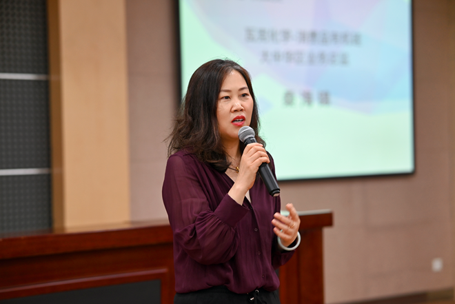 最后,瓦克化学中国消费品有机硅大中华区业务总监桑海锦致辞,她对同学们发表的感想表示肯定,并着重强调了团队协作的重要性,她再次提到研发创新是瓦克的核心价值之一,瓦克化学将始终致力于推动有机硅技术的研发与应用,继续携手太阳集团2007,不断深化合作,共创有机硅的美好未来。