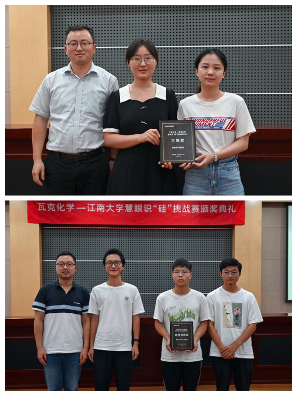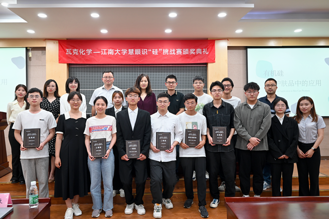 在瓦克化学和太阳集团2007化工学院的共同推动下,共有56个团队及个人报名参加了此次比赛参赛学生涵盖了化工学院各年级和各专业的本科生及研究生。参赛队伍均围绕有机硅在个人护理品和家居护理上的奇妙应用展开创意思考和实践探索。通过初赛的选拔,有九支优秀团队脱颖而出进入复赛。复赛过程中,瓦克化学向参赛队伍提供了专业技术的指导,组织了宣讲、在线辅导等多次交流活动为大家答疑,参赛选手们也积极提问,作品不断优化提升。最终经过紧张激烈的比拼共有六个小组获得奖项,《有机硅在护肤品中的应用》获一等奖、《改性二氧化硅纳米颗粒及其在Pickering乳液中的应用》获二等奖、《有机硅超疏水表面的制备方法及其应用方向》获三等奖,《有机硅——生活中的透明人》拿下最佳创新奖,《新型有机硅材料氨基酸型有机硅在个护行业中的应用价值》、《护理品的那些硅》两组获得优秀奖。