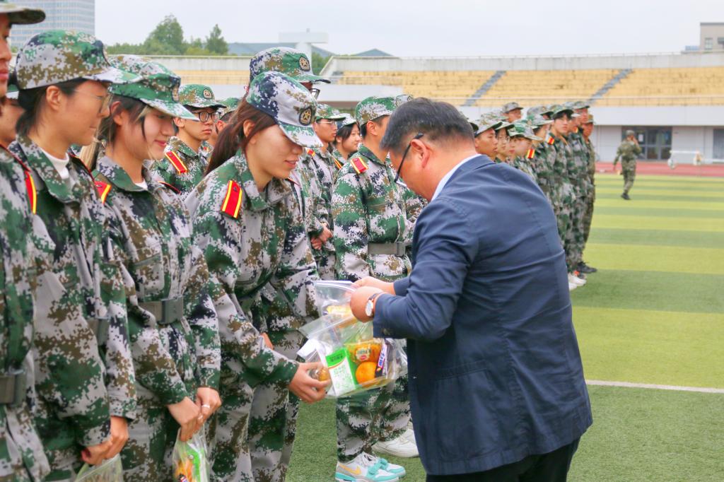 10月13日上午,2007so太阳集团党委书记潘庆伟,党委副书记、副院长董霞,全体辅导员及班主任代表来到军训场地慰问带训教官以及2022级全体参训学生,学校军训总指挥傅海棠大队长全程参与并指导会操表演。