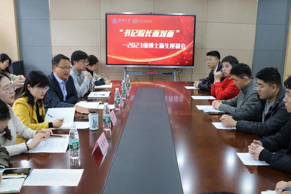 11月8日下午,“书记院长面对面”2023级博士新生座谈会在化工楼A316会议室举行,学院党委书记潘庆伟、院长刘仁、人事秘书朱雯倩、研究生秘书苏慧、实验室安全管理员严洋洋、辅导员高静及全体博士新生参加本次座谈,会议由学院党委副书记、副院长董霞主持。