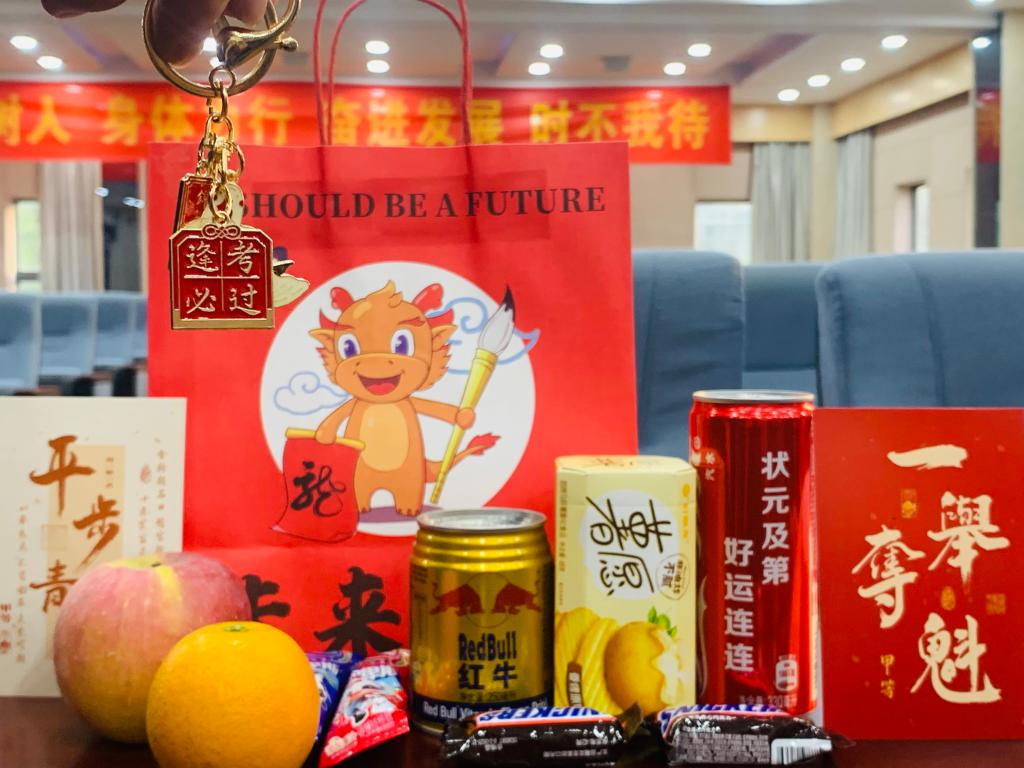 随后,潘庆伟、董霞及各班班主任为考研学生分发考研加油礼包。加油礼包中包括考研上岸定制书签、定制姓名可口可乐、心想事“橙”橙子、“苹”安上岸苹果、“牛”气冲天红牛、金“棒”提名棒棒糖、“薯”你最棒薯愿、“士”不可挡士力架、逢考必过钥匙扣、礼品袋等蕴含祝福的小礼品,同学们纷纷表示感受到了来自化工学院的暖意,并将在最后冲刺阶段全力以赴,争取一战上岸,不负韶华,为院争光。