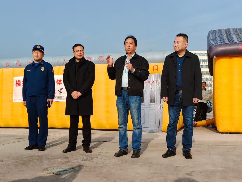 活动开始前,宜兴研究生院管理办公室、消防维保单位和物业工作人员在校区南门大停车场空地提前布置好灭火器、汽油等消防演练物资,在知行楼和清源楼做好烟幕弹安置以及人员疏散路径导引等准备工作。
