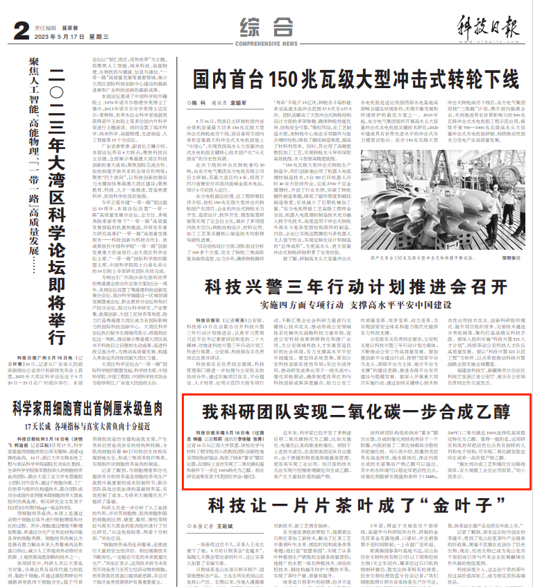 二氧化碳热催化连续流一步高效稳定制乙醇的研究工作取得里程碑式突破