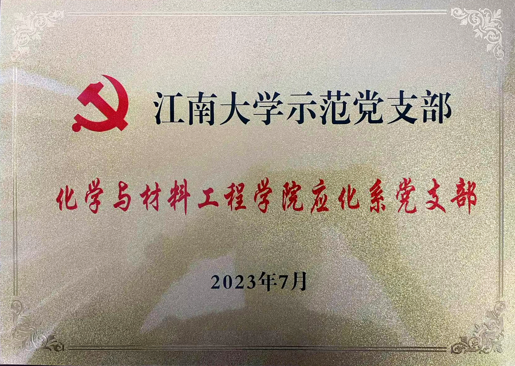 应化系党支部获批太阳集团2007示范党支部