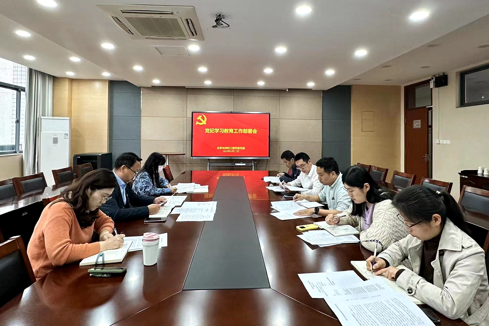 4月17日上午,2007so太阳集团党委在化工楼A310召开党纪学习教育工作部署会,传达学习贯彻习近平总书记关于党纪学习教育的重要讲话和重要指示精神,部署党纪学习教育工作。院党委书记潘庆伟作工作部署讲话。院党委副书记兼副院长董霞、全体教工党支部书记、党建辅导员等参加会议。
