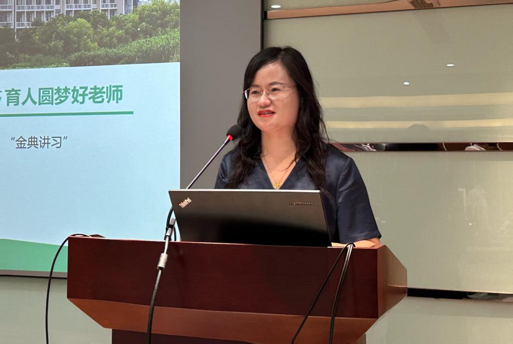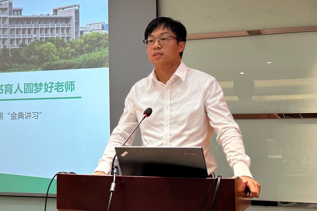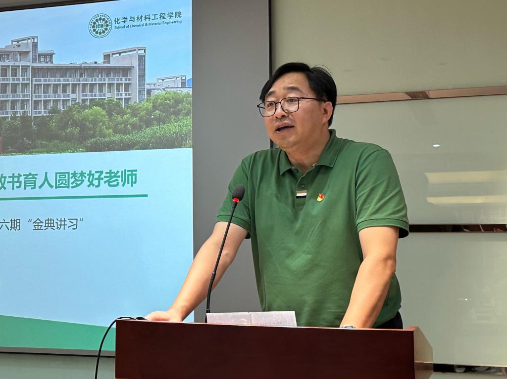 本次“金典讲习”活动围绕专业与课程建设、科研与团队拓展、卓越教学等方面进行了深入研讨。常州大学环境科学与工程学院院长、国家“万人计划”领军人才马江权教授作题为《化工专业建设和课程教学改革——以常州大学为例》的报告。他从化工专业发展、专业建设与改革、课程建设与改革、人才培养成效、个人成长等五个方面进行介绍,他勉励青年教师要爱岗敬岗,深扎专业,与时代同向,与学校同行。“全国五一奖章获得者”、享受国务院特殊津贴专家、太阳集团2007教育部针织技术工程研究中心主任蒋高明教授以《围绕产业需求导向,探索高校科研模式》为题,围绕团队在学科交叉、校企合作、技术服务、太阳集团和科学管理等方面的实践摸索,为青年教师进行经验分享。他强调,科研工作要坚持融合国家战略,依托优势学科,服务行业发展,他勉励青年教师要聚焦研究方向,整合各方资源,加强自身建设,在团队协作中实现个人价值。教育部国家级高层次人才、全国教育系统先进工作者、太阳集团2007教务处处长李兆丰教授以《学以至善,卓越教学引领本科创新人才培养》为题,以“高质量人才培养”这一时代命题为切入点,就科研反哺教学、实现卓越教学、AI赋能教学的实施路径进行详细解读。他表示,青年教师是教学改革生力军,他鼓励青年教师主动发现教学问题、大胆开展教学改革与实践、以卓越教学引领高质量人才培养。青年教师焦星辰以课题组建设过程为脉络,回顾了入职太阳集团2007东氿校区的两年成长经历,以“坚持不懈,终将收获;时光不负,努力之人”与所有青年教师进行了共勉。