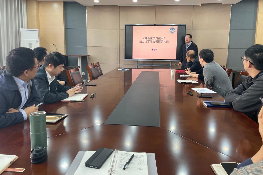 随后,罗静和钮腾飞两位老师分别就基层教学组织示范点的建设和申报情况进行了详细介绍。罗静分享了涂料课程群教学团队在资源建设、示范点申报、AI技术与学科教学融合、新形态教材编纂以及产教融合等方面的探索与成果。钮腾飞则介绍了化工工程与设计课程群教学团队在化工设计竞赛和产教融合方面所取得的显著成效。此外,宋冰蕾老师针对线上线下混合式课程的建设进行了具体分析,以《界面化学与技术》课程为例,阐述了课程简介、面临问题、建设目标以及未来规划。
