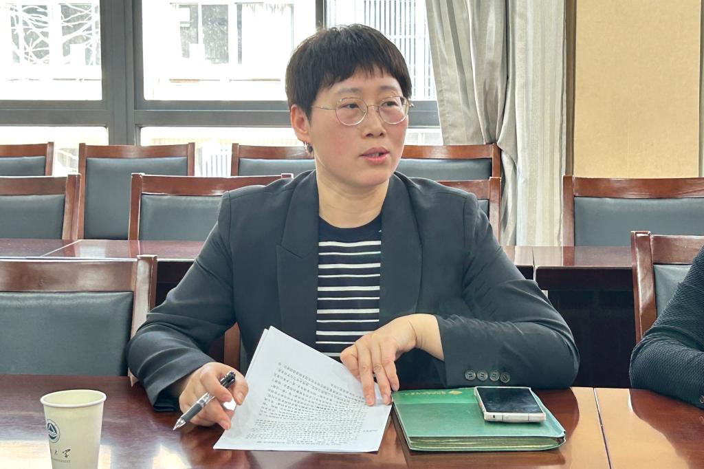 潘庆伟代表学院对李佳敏一行的到访表示欢迎,并对校党委宣传部、融媒体中心长期以来给予学院的支持和帮助表示感谢。围绕本次调研内容,从学院“第一议题”制度落实情况、学院党委中心组学习开展情况、意识形态阵地建设及学院网站管理、立德树人工作经验做法、年度宣传亮点与方向等方面进行了全面而细致的介绍,并对学院在宣传思想文化工作中遇到的困难和问题进行了说明。董霞就学院网络思政工作亮点和特色进行了汇报,并围绕特色思政品牌打造等工作进行展望。