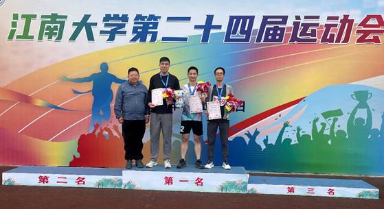 开幕式上,学院20余名教职工参加学校八段锦表演方阵,队员们身着统一服装,动作行云流水、刚柔并济,将中华传统养生文化的精髓与教职工的健康活力完美融合。竞技场上,我院教职工顽强拼搏、全力以赴,多个项目实现突破,张旭老师在男子甲组跳远决赛中发挥出色,凭借强劲的爆发力和娴熟的技巧摘得桂冠;童杰祥老师克服风雨天气影响,在男子甲组400米赛场上力克强敌,勇夺金牌;男子4×100接力和团队跳绳的老师们团结一致、配合默契,获得季军。