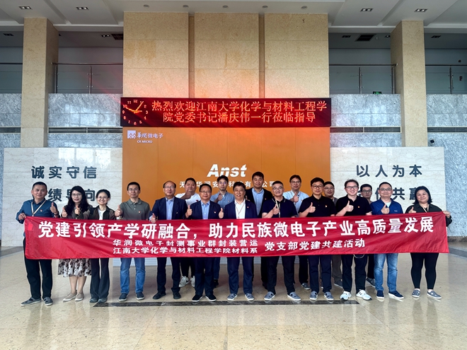 为深入学习贯彻党的二十大和二十届三中全会精神,落实高校“双带头人”教师党支部书记“强国行”专项行动计划,推动党建业务深度融合,4 月 28 日下午,2007so太阳集团材料系党支部与华润微电子封测事业群封装营运党支部在华润安盛科技有限公司第一会议室举行党建结对共建签约仪式,以党建为桥梁推动校企深度合作,服务教育强国建设,为民族微电子产业高质量发展注入新动能。化工学院党委书记潘庆伟、华润微电子封测事业群党委书记费锐,双方党支部党员代表及业务骨干参加签约仪式。