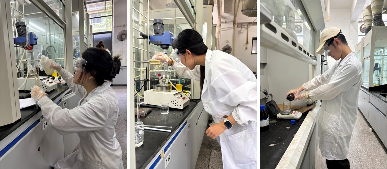 本次比赛信息发布后,我院高分子材料与工程专业同学积极响应,共有包括杨思远、王梓璇、王歆宇、杨金子豪在内的16位同学报名参赛,最终现场参赛选手为13名。比赛以《甲基丙烯酸甲酯的悬浮聚合》实验作为竞赛项目,要求选手在4小时内完成实验装置搭建、聚合反应、产物处理以及仪器清理、归位等工序,最终制备出可供评分的聚合物。比赛现场由罗静、朱叶和魏玮三位老师作为评委。