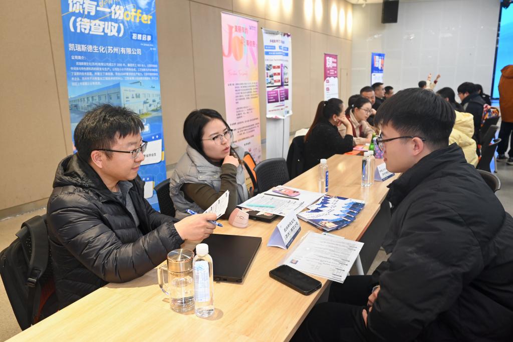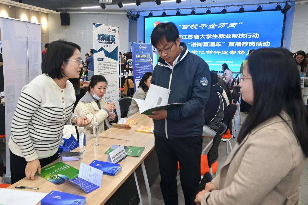招聘会还同步举办“送岗直通车”直播荐岗活动,南京科润工业介质股份有限公司、普为(上海)新材料科技有限公司、大连连晟新材料集团有限公司、江苏卓高新材料科技有限公司、江苏诺赛塔教育咨询有限公司、武汉时间科技有限公司等6家单位校园招聘负责人,通过线上平台进行了直播荐岗,一苇堂检测科技(上海)有限公司、普为(上海)新材料科技有限公司线下同步开展“一站职达”宣讲会,进一步破除场域和时间限制,让更多师生深入了解企业和岗位需求。