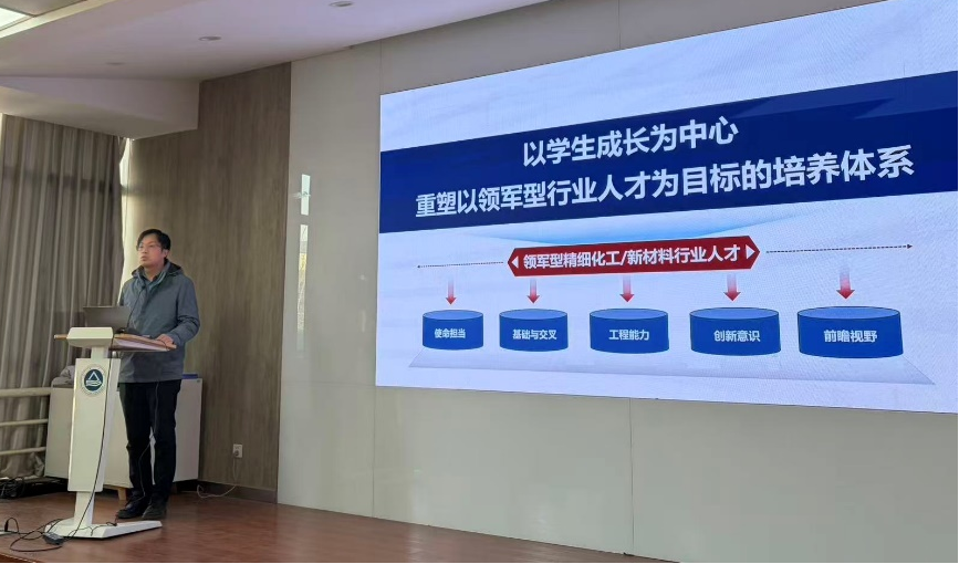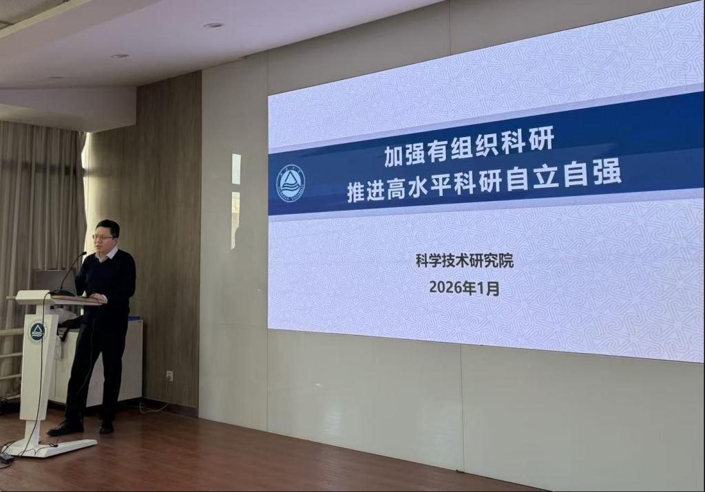 科学技术研究院院长东为富以《加强有组织科研推进高水平科研自立自强》为题作专题报告。报告深入分析了新时代高校科技创新的使命与要求,强调要坚持“四个面向”战略导向,强化有组织科研布局。东为富指出,“十五五”时期,国家将在新能源、新材料、航空航天等领域加大布局,学院应主动对接国家战略需求,在精细化工、先进材料等优势领域加强体系化攻关。他结合学校2025年科研经费突破15.6亿元、国家自然科学基金立项170项等亮眼数据,鼓励学院进一步优化科研组织模式,提升服务国家重大需求的能力。