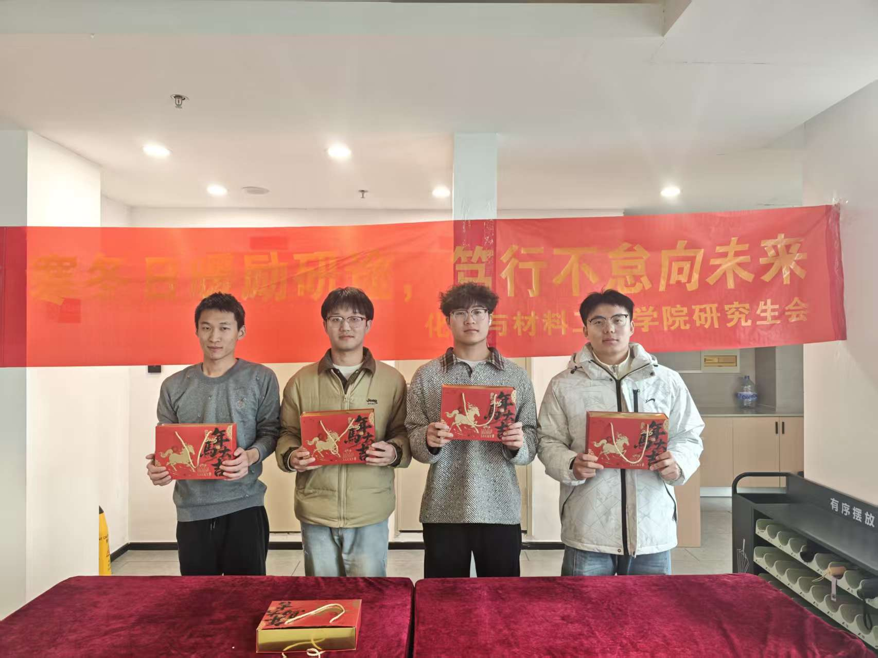 在蠡湖校区,学院领导老师逐一走进研究生办公室,与同学们亲切交谈,详细了解留校缘由、假期科研计划、日常生活及实际需求,认真倾听学子们的诉求与心声,董霞对同学们积极进取、潜心治学的精神风貌予以充分肯定,并结合寒假留校生活提出三点希望:一是牢固树立安全意识,注意人身与财产安全,谨防网络电信诈骗;二是科学规划假期时间,做到张弛有度,统筹好科研与休闲锻炼;三是保持沟通联系畅通,确保在校如在家,度过一个平安、温馨、充实的春节。在东氿校区,学院研究生会志愿者同学为每位留校学子送上了学院精心准备的“新春礼盒”。