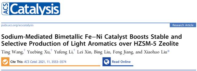 近日,我校刘小浩教授团队创造性地构建Na调节的Fe-Ni双金属费托催化剂与HZSM-5分子筛耦合用于合成气(CO/H2)一步制轻质芳烃取得重要进展,研究成果以封面文章(图1)发表在催化领域重要期刊《ACS Catalysis》(ACS Catal.2021, 11, 3553-3574),该论文化工学院博士研究生王廷、胥月兵副教授和硕士研究生李玉峰为共同第一作者,我校化工学院刘小浩教授为通讯作者。