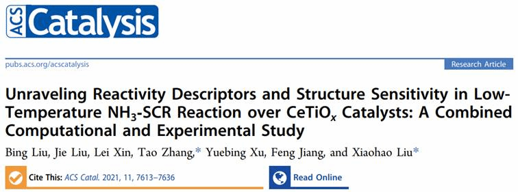 近日,我校化工学院刘小浩教授团队在稀土铈基低温耐硫脱硝催化剂反应描述符结构-性能关系的研究中取得重要进展,相关研究成果在催化领域顶级期刊《ACS Catalysis》上发表(ACS Catal. 2021, 11, 7613-7636),该论文化工学院青年教师刘冰副教授为第一作者,中国人民大学环境学院张涛副教授和我校化工学院刘小浩教授为共同通讯作者。